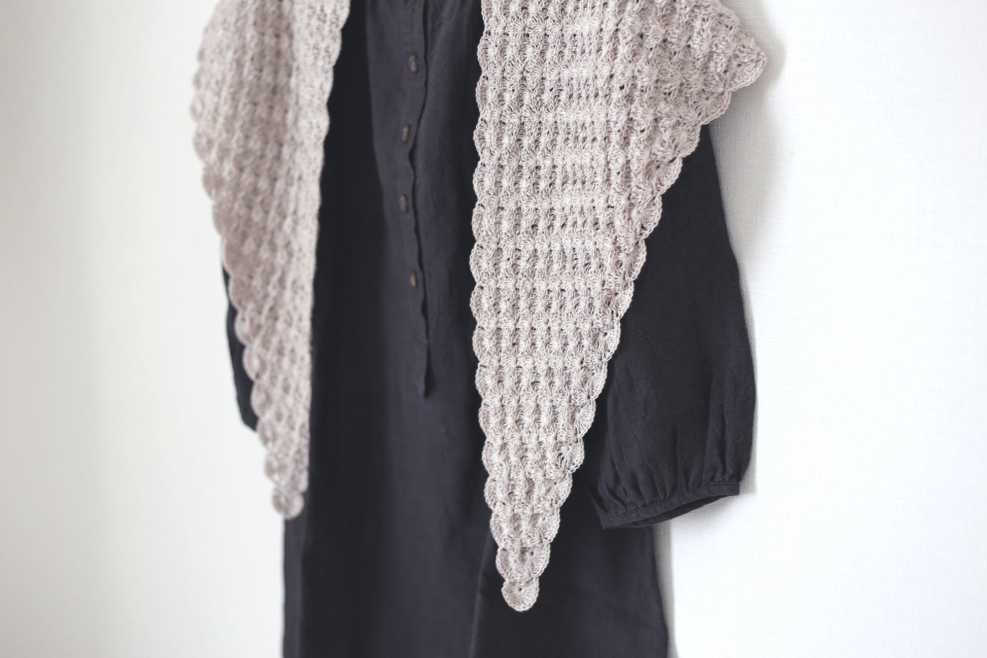 かぎ針編みの三角ショールは、ついつい、いくつも編んでしまうアイテムの一つではないでしょうか。