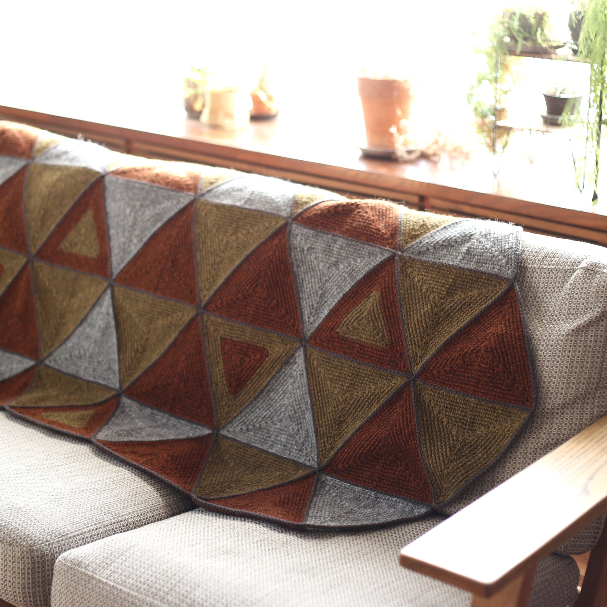あまり見かけない三角のモチーフで、きりっとした幾何学模様になっています。
