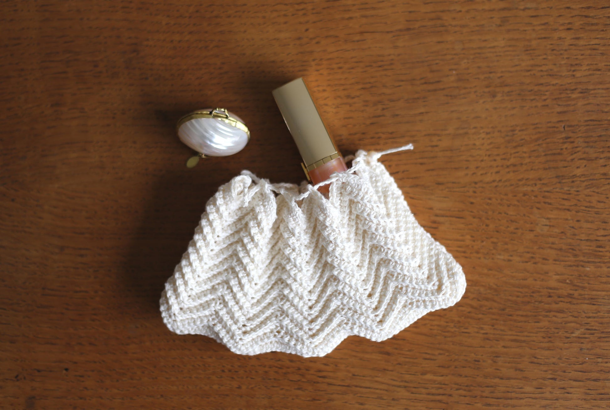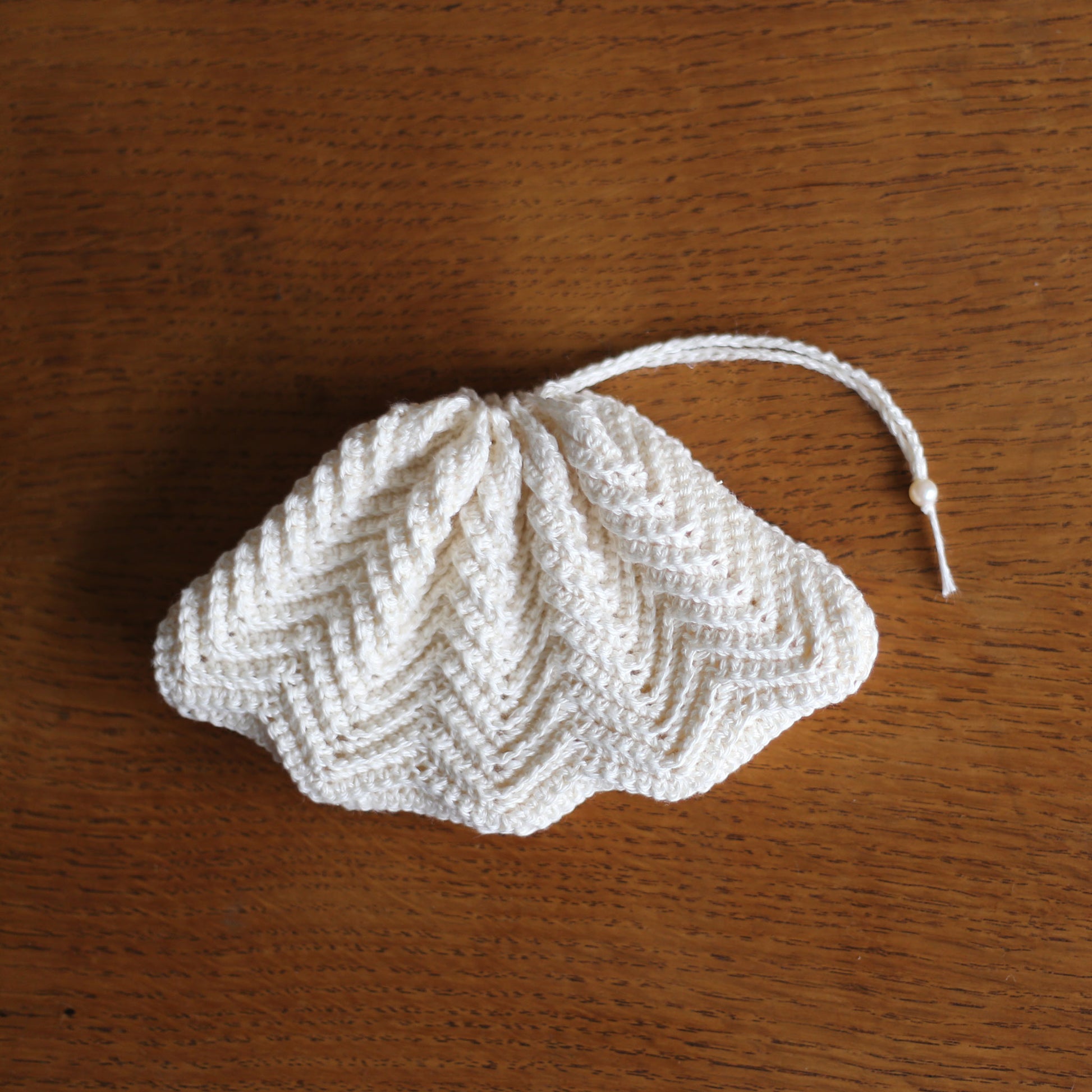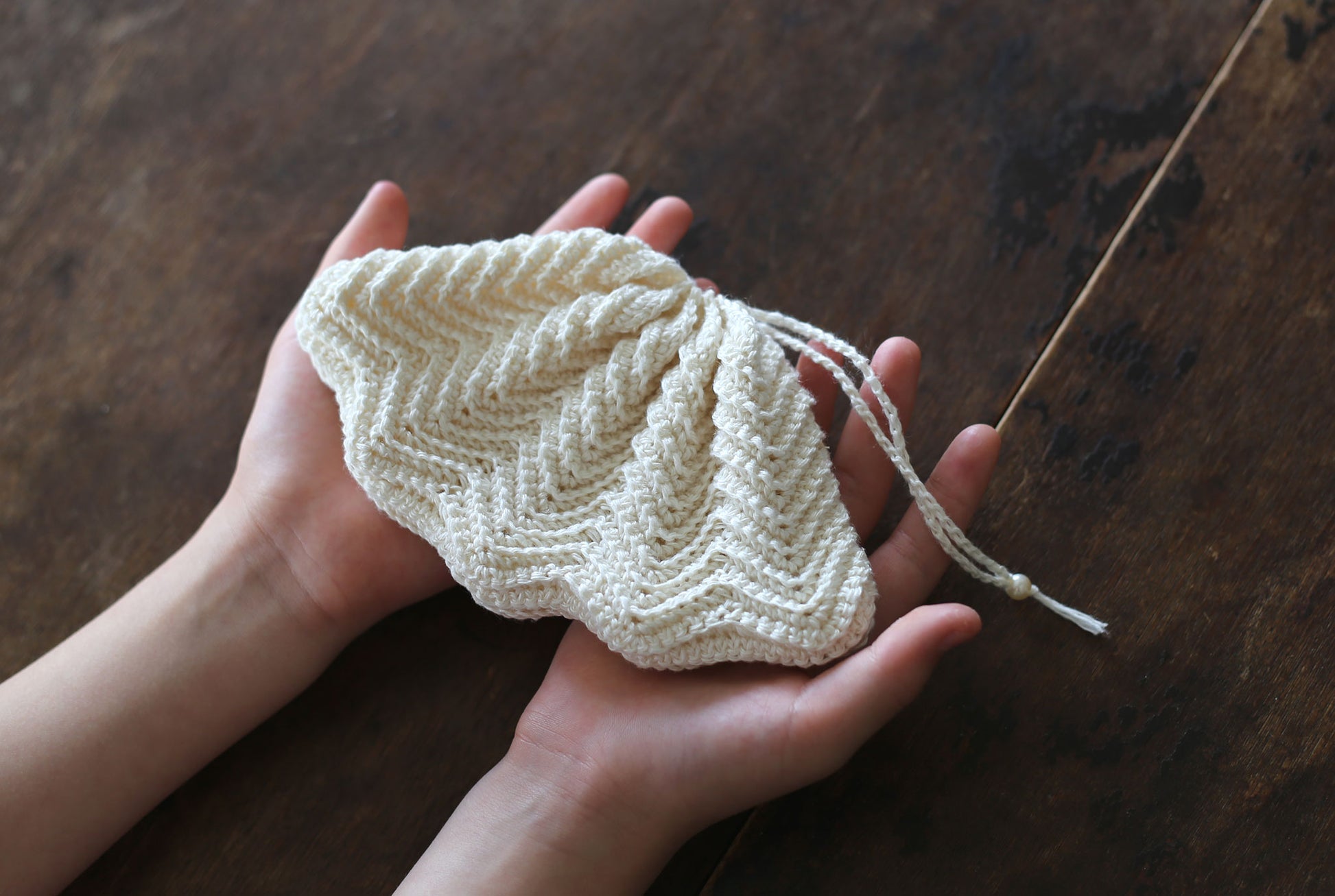 This drawstring bag can be crocheted in a short time, but it's not too short, and the shape is interesting, so I think it's a good idea to crochet it and give it to someone.