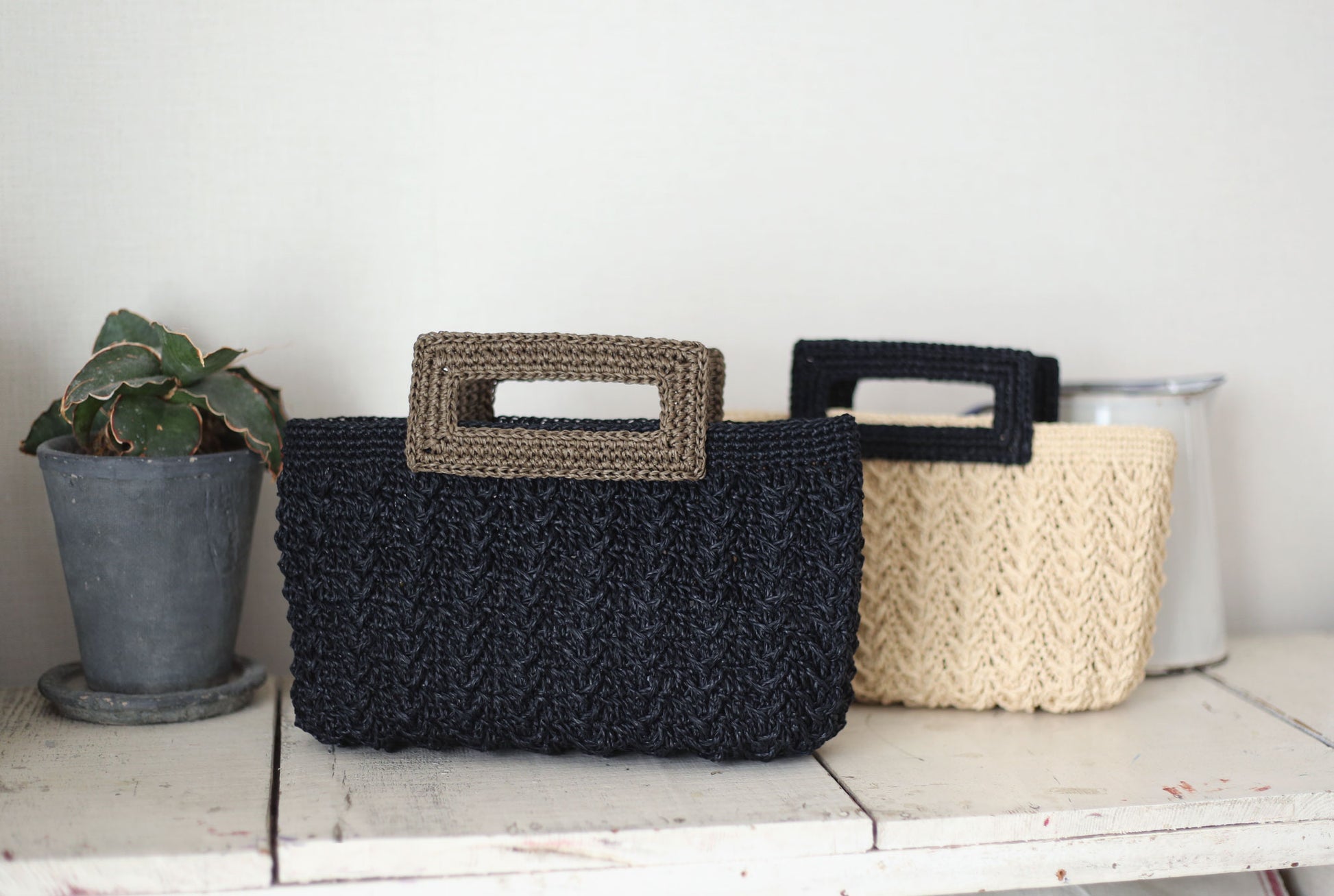 When I crocheted different colors of black and khaki, I tried changing the depth of the bag to a deeper one, but the balance didn't seem right...