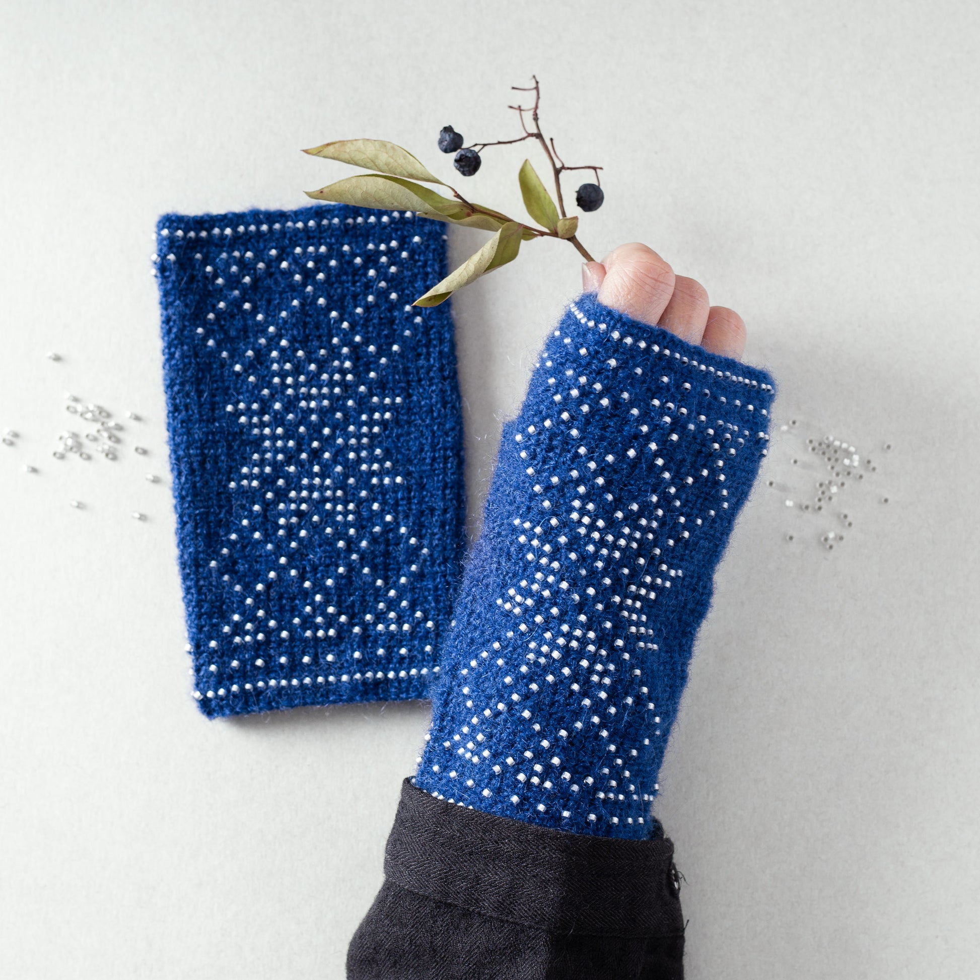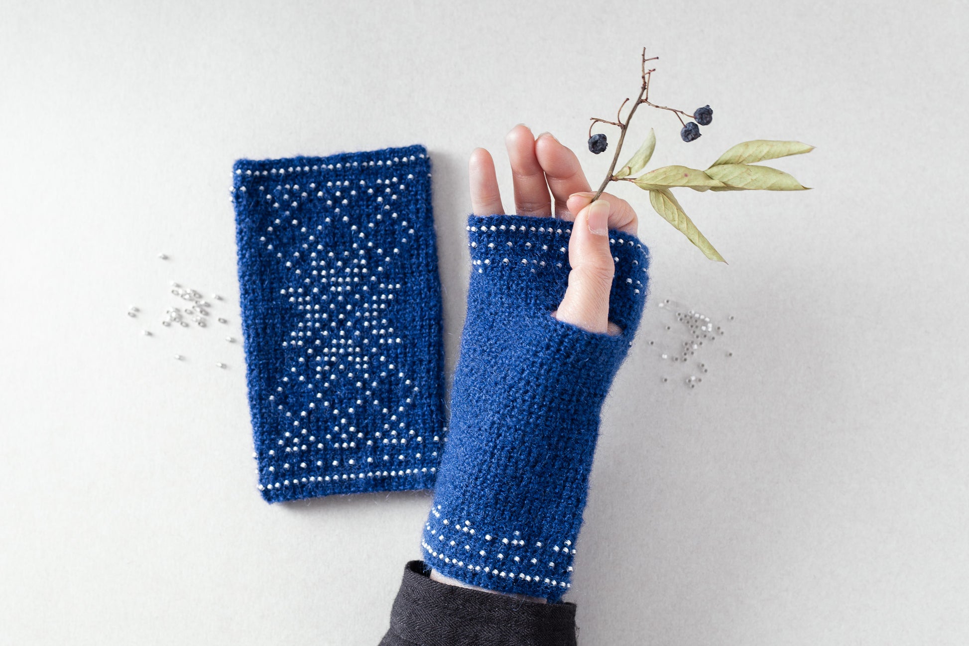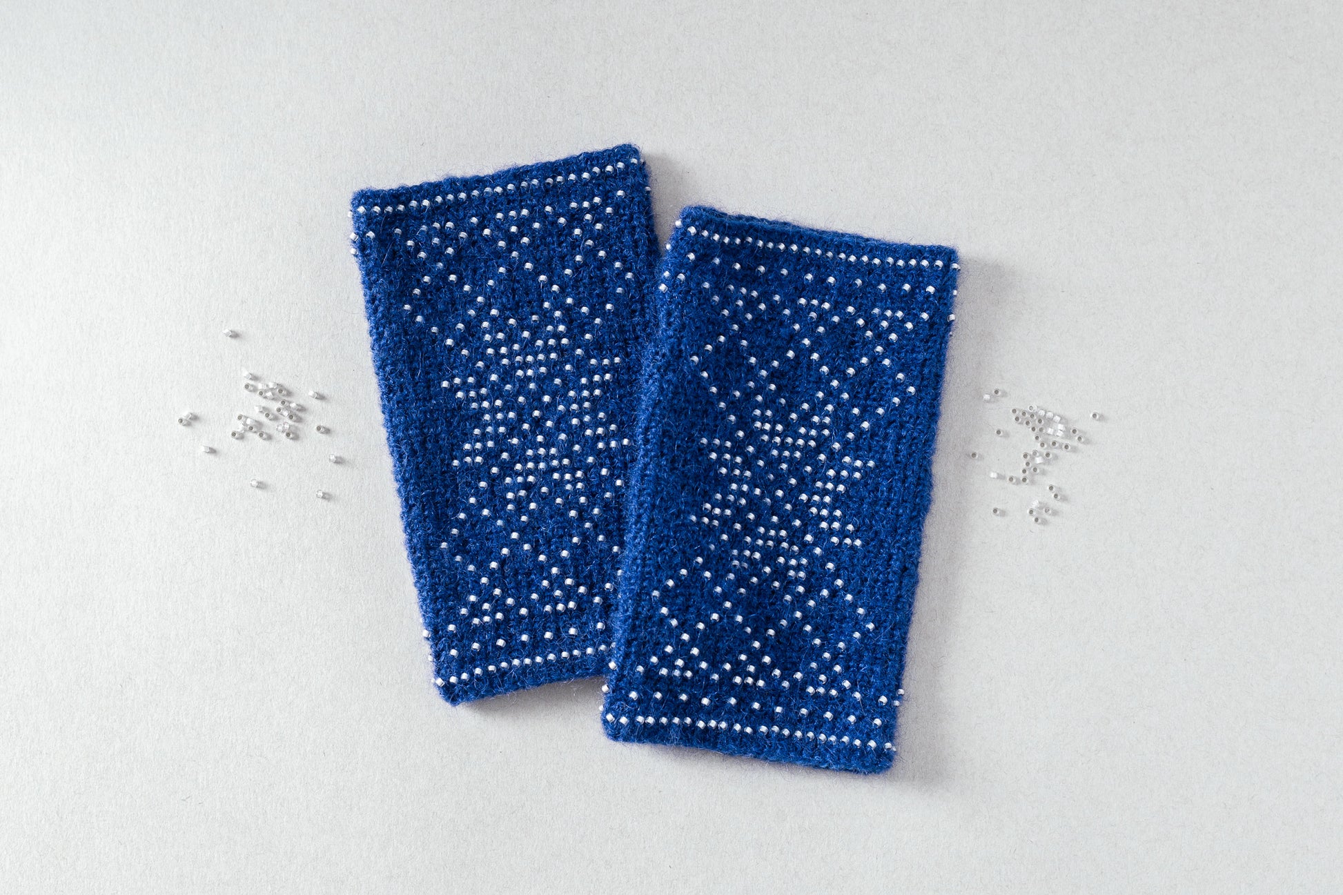 かぎ針編みのビーズ編みでつくるハンドウォーマーです。